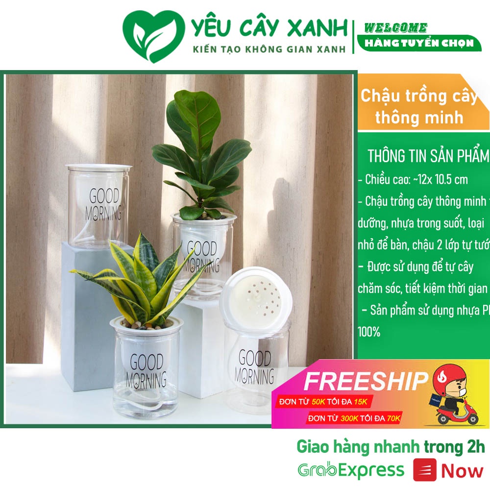 Nhà cửa & Đời sống > Làm vườn > Chậu cây || Chậu trồng cây thông minh tự dưỡng, nhựa trong suốt, loại nhỏ để bàn, chậu 2 lớp tự tướiCòn hàng