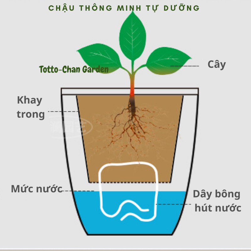 - Mô tả: SP bao gồm 1 chậu ngoài chứa nước, 1 khay trong để trồng cây, 01 dây bông hút nước