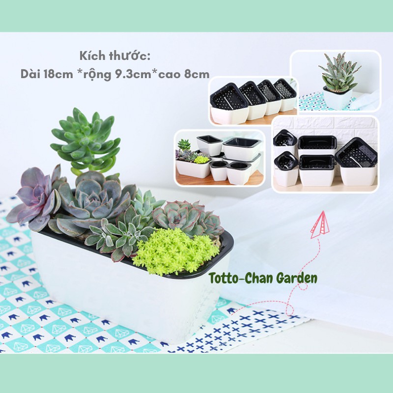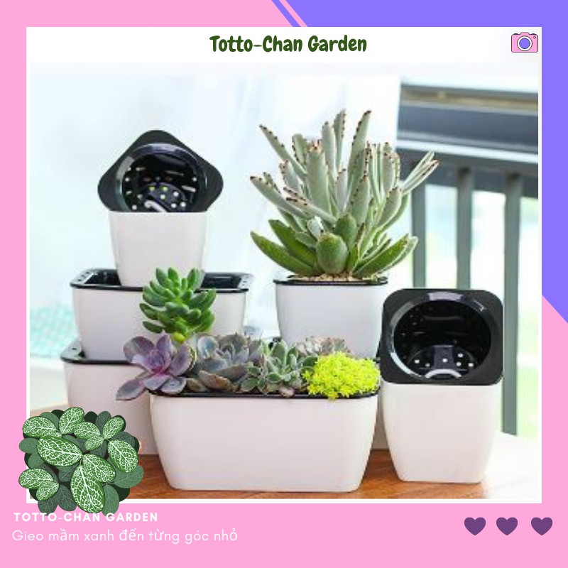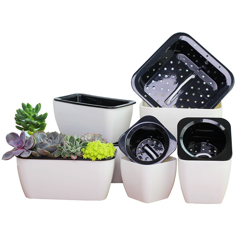 Chậu trồng cây thông minh tự tưới hình chữ nhật trồng cây để bàn tiểu cảnh sen đá độc đáo