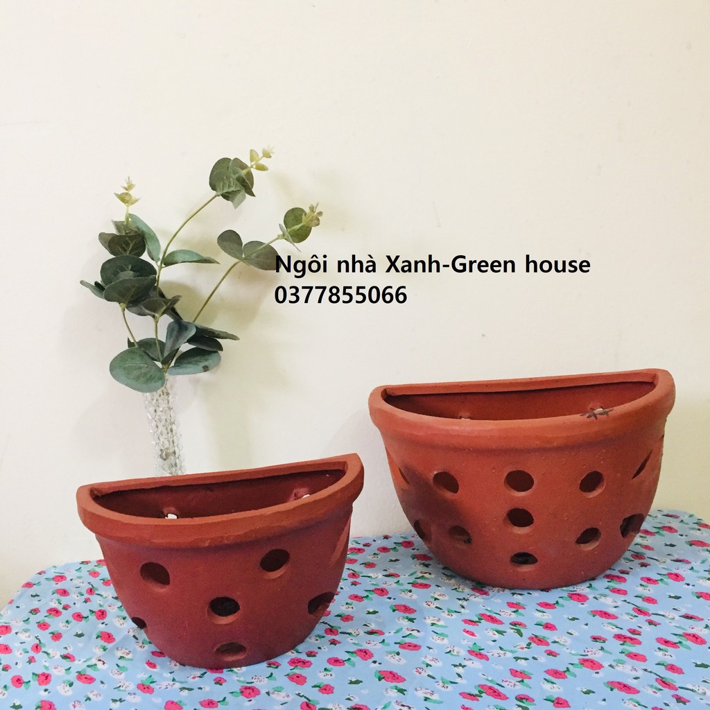 ✔ Chậu trồng cây treo tường, chậu trồng Lan gốm sứ đất nung Bat Tràng cao cấp, trang trí nhà hàng quán cà phê, ban công✨ Chậu gốm sứ đất nung trồng cây trồng hoa treo tường, ốp tường trang trí, hình bán nguyệt, có lỗ thoát nước và lỗ treo