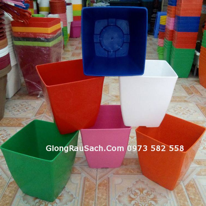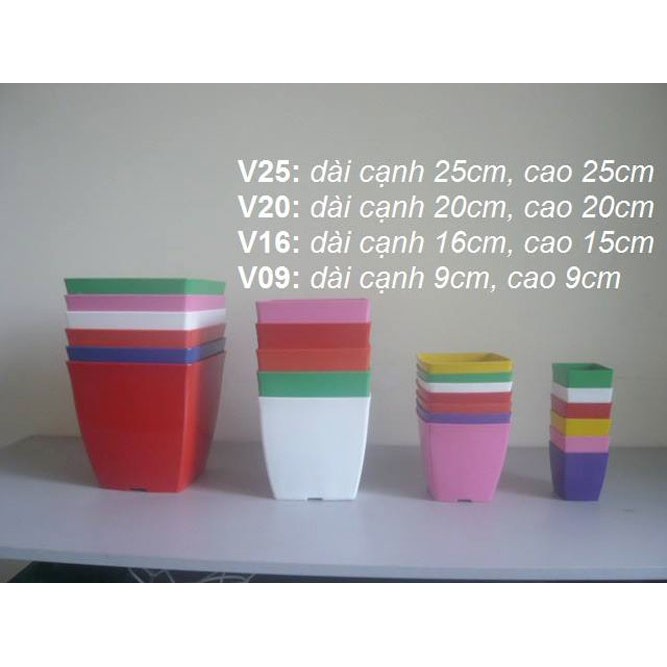 Chậu trồng cây trên bàn, trong nhà, trồng rau trồng dây tây trồng các loại cây cảnhChậu Vuông V16 kích thước 12*15cm