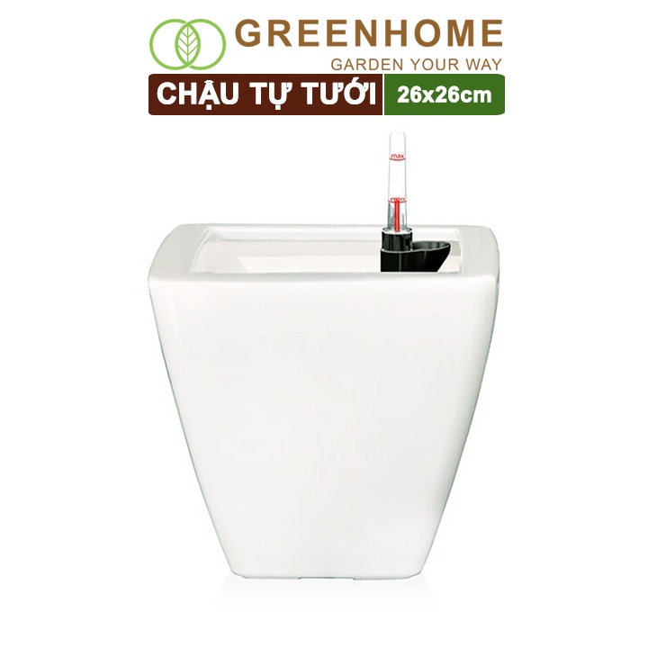 Nhà cửa & Đời sống > Làm vườn > Chậu cây || Chậu trồng cây tự tưới, R26xC26cm, vuông bầu, sơn trắng, siêu nhẹ, thẩm mỹ, độ bền cao |GreenhomeCòn hàng