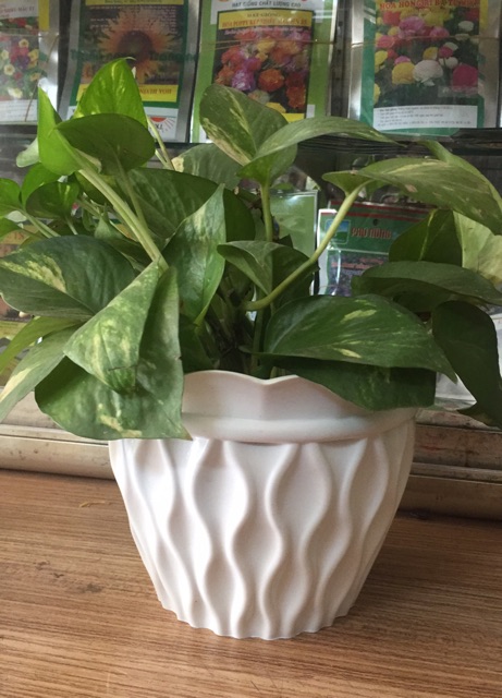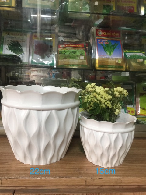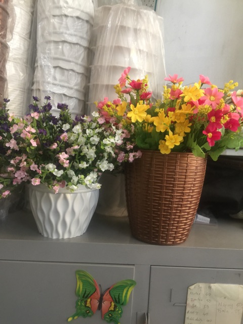 Chậu không kèm hoa.Sản phẩm nhựa dầy dặn, cứng cáp.