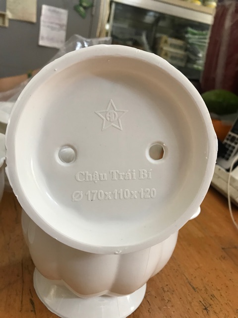 Chậu nhựa trồng hoa loại nhỏ để bàn làm việcNhựa trắng loại tốt, hình dạng tròn có chân, thiết kế dạng trái bí ngô dễ thương