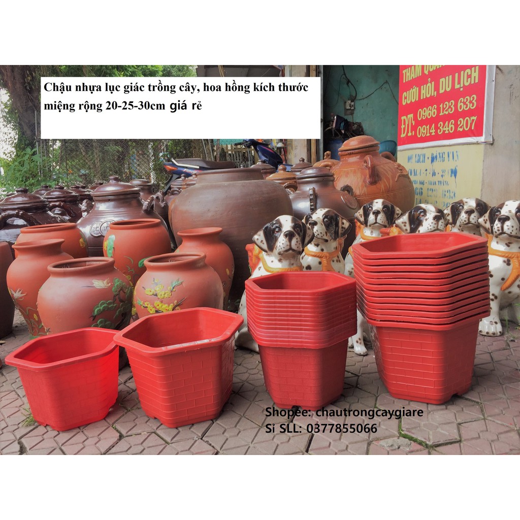 Chậu nhựa lục giác trồng cây, hoa hồng kích thước miệng rộng 20-25-30cm dày dặn, bền đẹp, giá rẻ