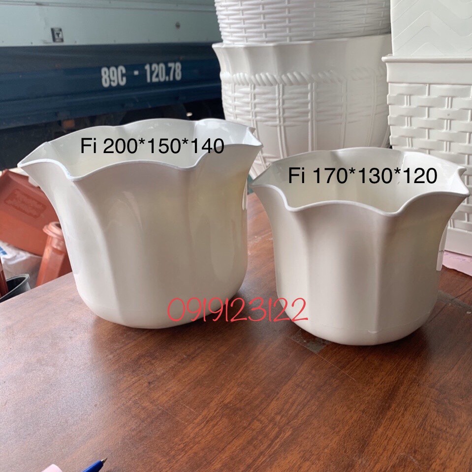 có 2 size : miệng bèo bé: fi 170*130*120 và to fi 200*150*140