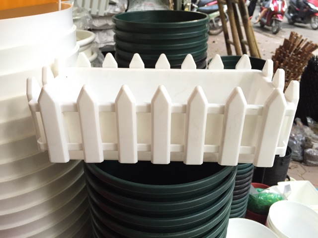 Chậu nhựa viền hàng rào đẹp mắt với nhiều màu sắc: trắng, xanh, cam, tím, đỏKích thước size: (dài x rộng x cao)