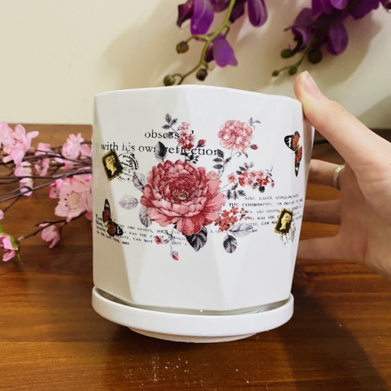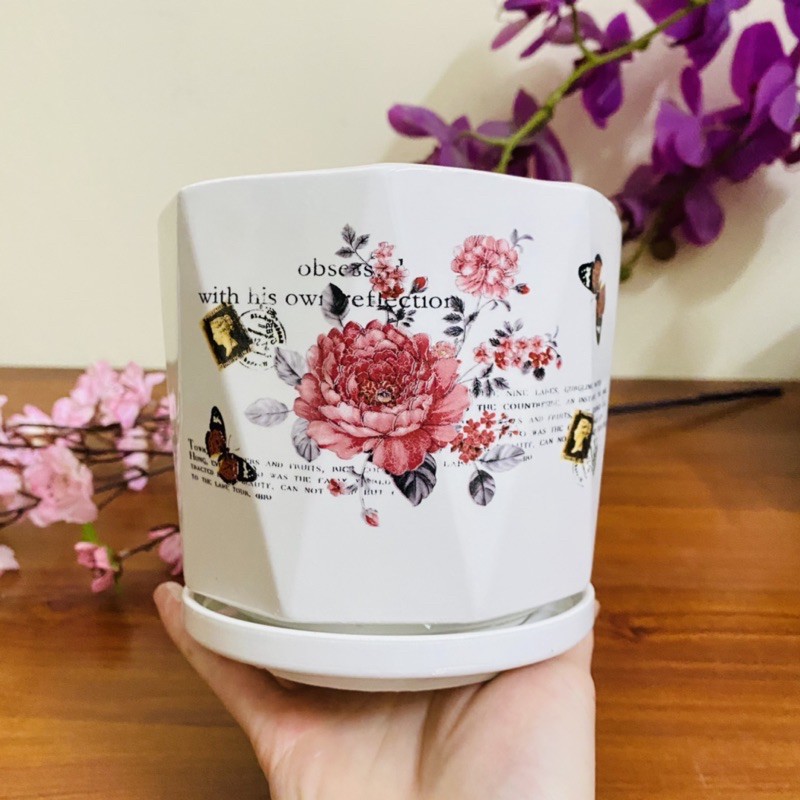 🌻 Chậu gốm sứ có kèm địa đựng nước, trồng cây, cắm hoa các kiểu rất xinh thích hợp để bàn, trang trí cửa sổ, để bàn văn phòng,...