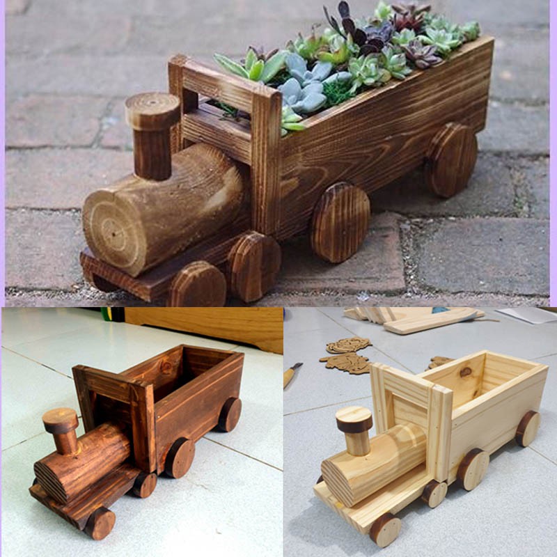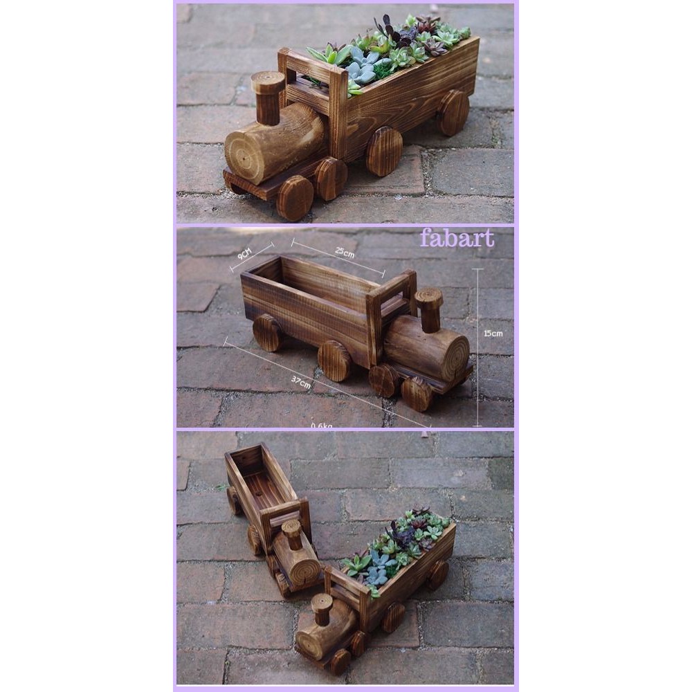 Giới thiệu Chậu trồng sen đá, xương rồng hình xe lửa bằng gỗ