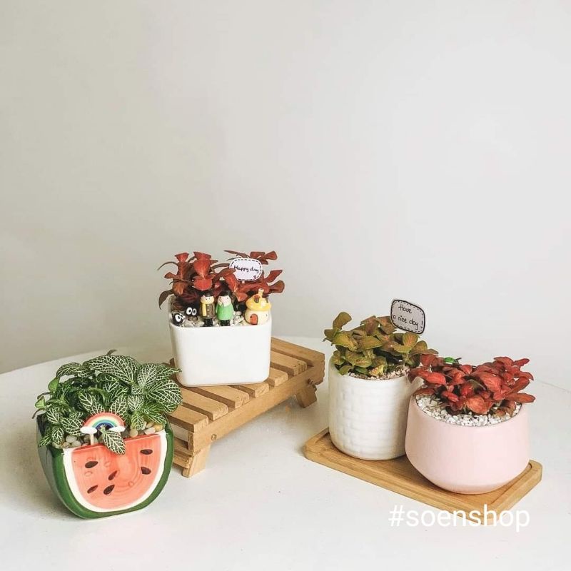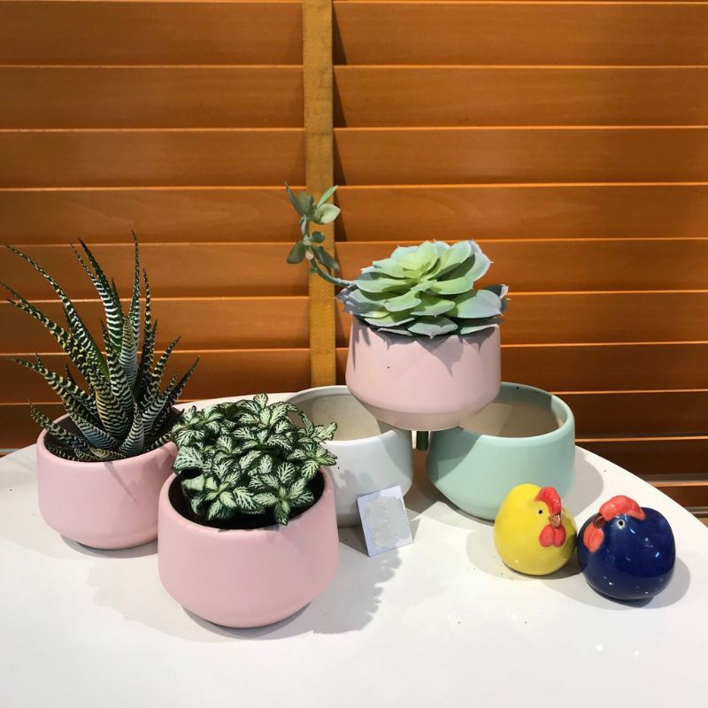 - Với hình dạng và màu sắc chậu vô cùng đa dạng, dễ thương, rất thích hợp để trồng các cây cảnh văn phòng, cây để bàn, cây mini, cây sen đá, xương rồng, trang trí bàn làm việc, bàn học.