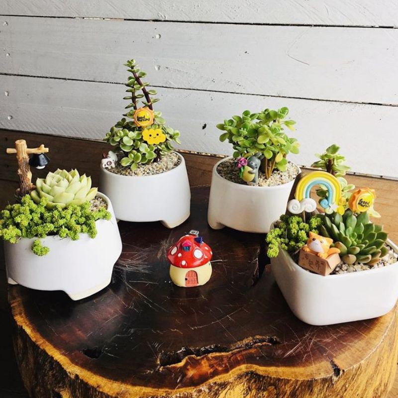 - Với hình dạng và màu sắc chậu vô cùng đa dạng, dễ thương, rất thích hợp để trồng các cây cảnh văn phòng, cây để bàn, cây mini, cây sen đá, xương rồng, trang trí bàn làm việc, bàn học.
