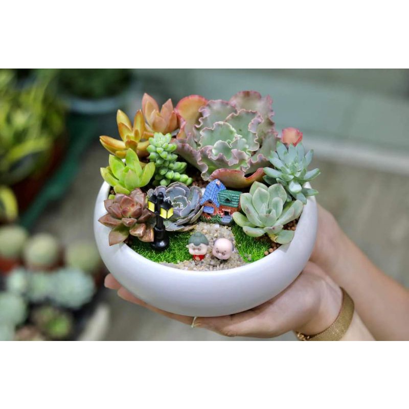 - Với hình dạng và màu sắc chậu vô cùng đa dạng, nhỏ gọn dễ thương, rất thích hợp để trồng các cây cảnh văn phòng, cây để bàn, cây mini, cây sen đá, xương rồng, trang trí bàn làm việc, bàn học.