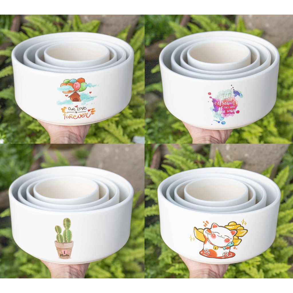 Chậu trụ thấp 4 cỡ in hình - Chậu trồng sen đá