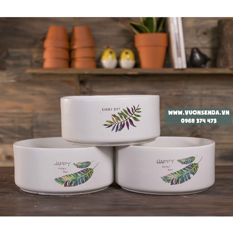 Chậu gồm 4 kích thước: 12x6cm, 16x7cm, 20x10cm, 23x10cmChậu gốm Bát tràng