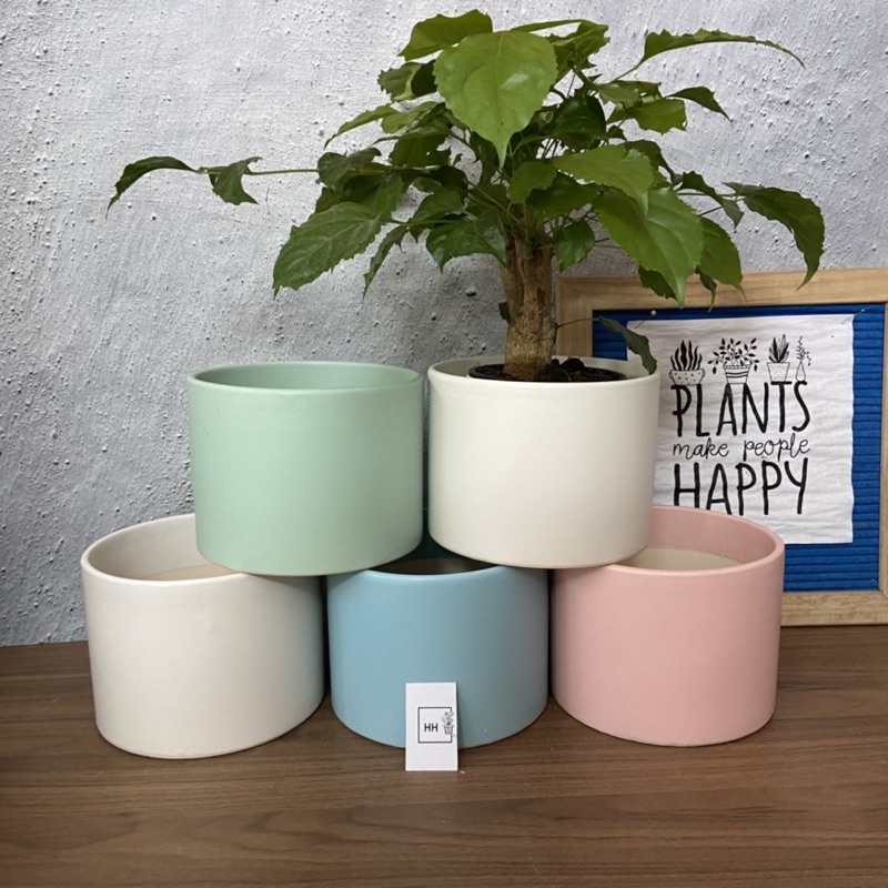 Chậu trụ thấp, 2 loại Trơn và Kẻ vuông, cỡ to 16*12cm, chậu trồng cây chất liệu gốm.Chậu miệng rộng dáng thấp thích hợp trồng cây trang trí tiểu cảnh, cây có bộ rễ nhanh phát triển, đẻ nhánh nhiều như Kim tiền, Lưỡi hổ,… giúp bạn lâu phải sang chậu khi cây phát triển.