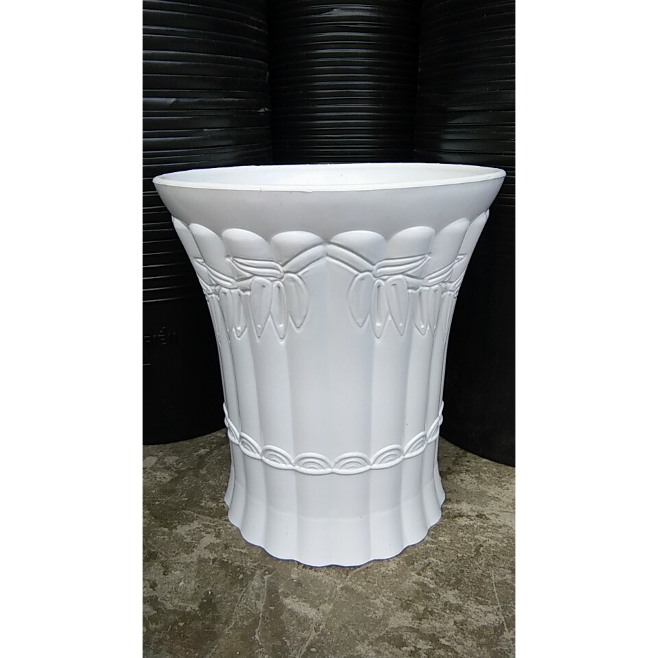 * Chậu nhựa trồng cây hoa văn trúc có kiểu dáng đầy đặn vững chãi.
