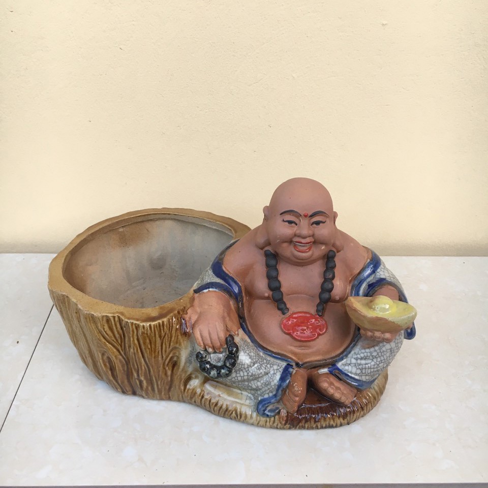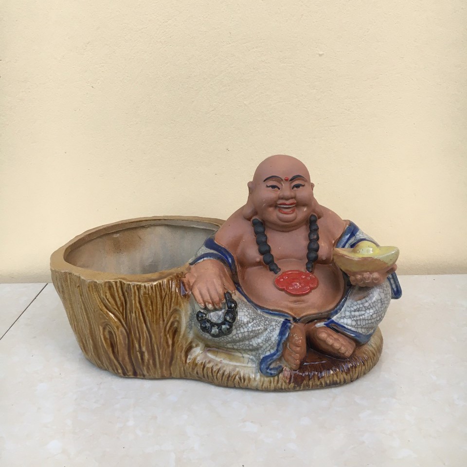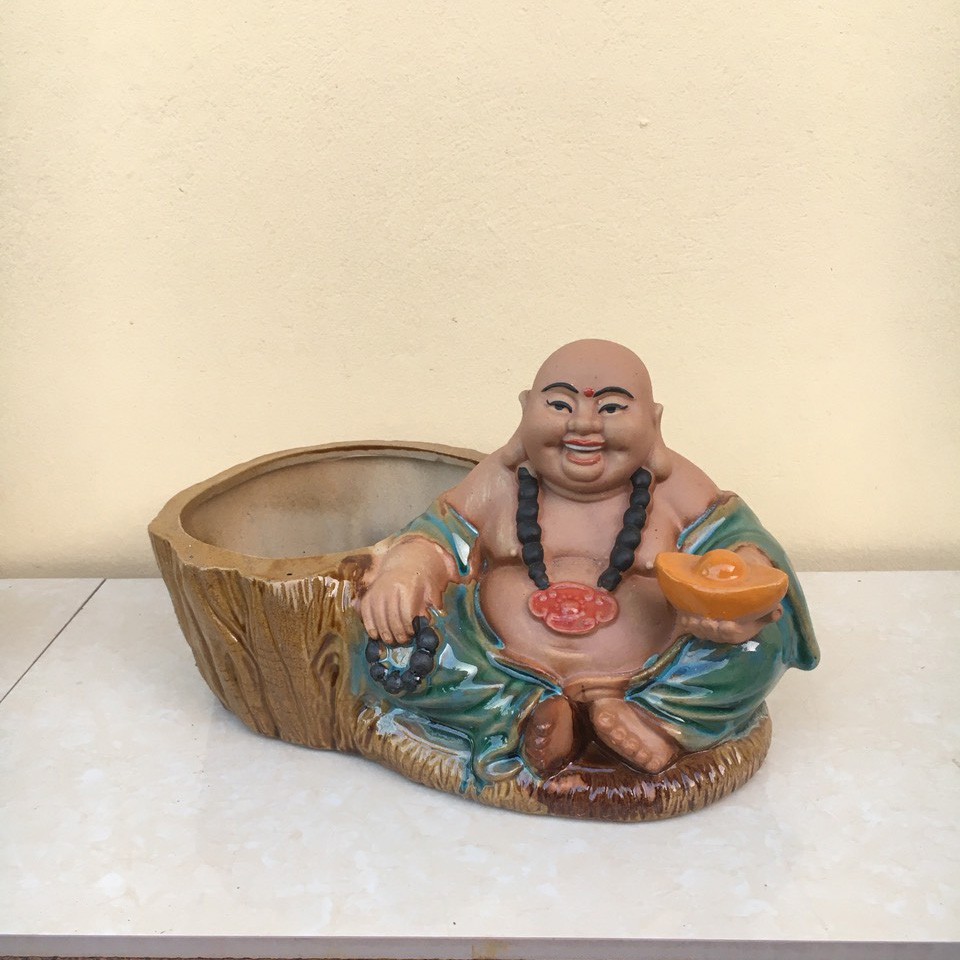Nhà cửa & Đời sống > Làm vườn > Chậu cây || Chậu tượng Di lạc cầm thỏi vàng men rạn và men xanh ngọc gốm Bát tràng 1 size CT-32Còn hàng