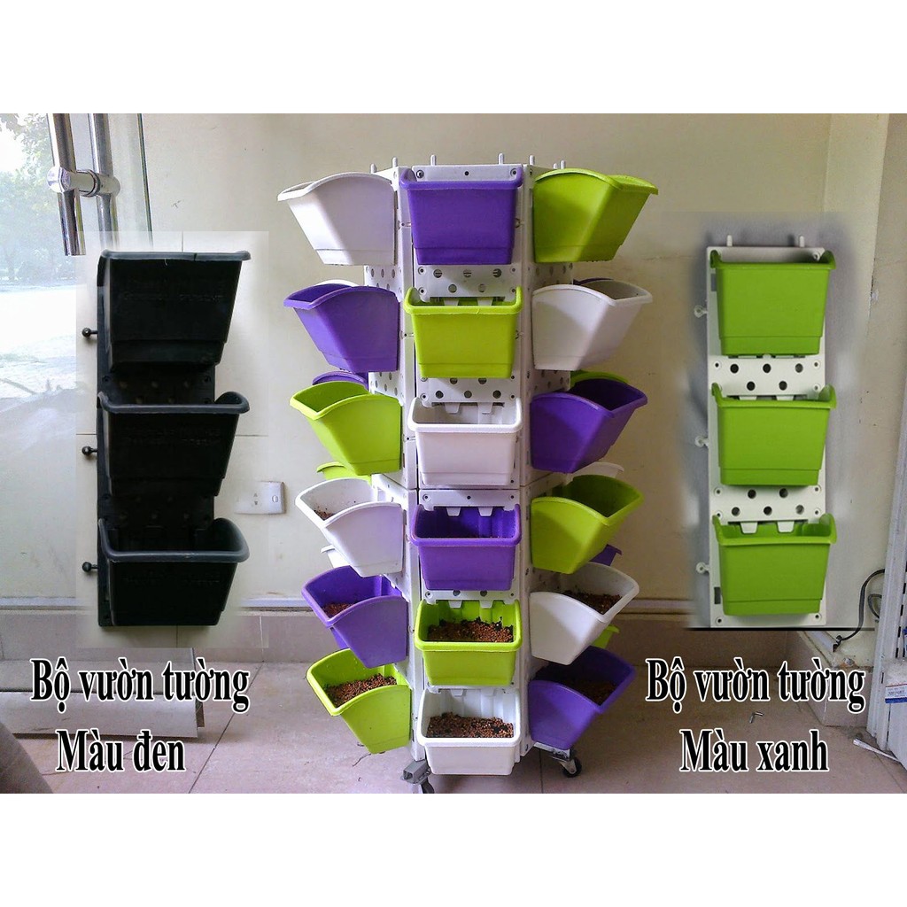 Một bộ vườn tường gồm 1 modum (khung) và 3 chậuNếu nhà bạn không có không gian, nếu nhà bạn không gian chật hẹp vườn tường là sự lựa chọn tối ưu cho những người yêu cây, hinh dáng nhỏ gọn có thể trồng quanh trụ nhà, trang trí các cột, trang trí các bức tường....