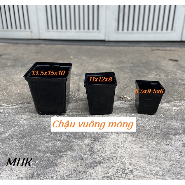 Chậu vuông nhựa mỏng !Size Trung : 11 x 12 x 8 ( Miệng x cao x đáy ) theo cm .