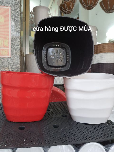 Nhà cửa & Đời sống > Làm vườn > Chậu cây || Chậu vuông sóng kèm dĩa lót đk 19cmCòn hàng