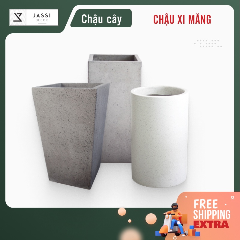 Chậu xi măng trụ tròn và trụ vuông | Jassi Decor (Chỉ áp dụng NOWSHIP / GRAB)