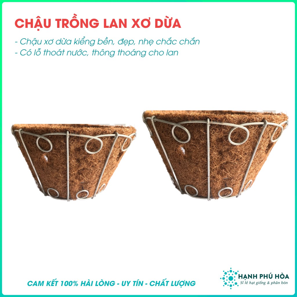 -Chậu lan xơ dừa được uốn tạo nhiều mẫu hợp thời trang, phía trong chậu được lót một tấm xơ dừa miếng để giữ đất trồng cây.