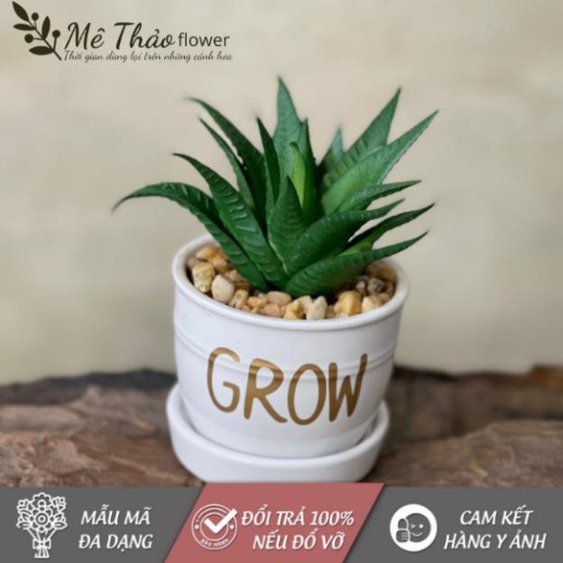 Chất liệu: nhựa cao cấp, kèm chậu sứ xinh xắn