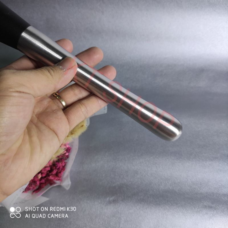 Chất liệu cán cầm bằng thép không gỉ. Đầu dằm bằng nhựa PP màu đenKích thước 21 cm