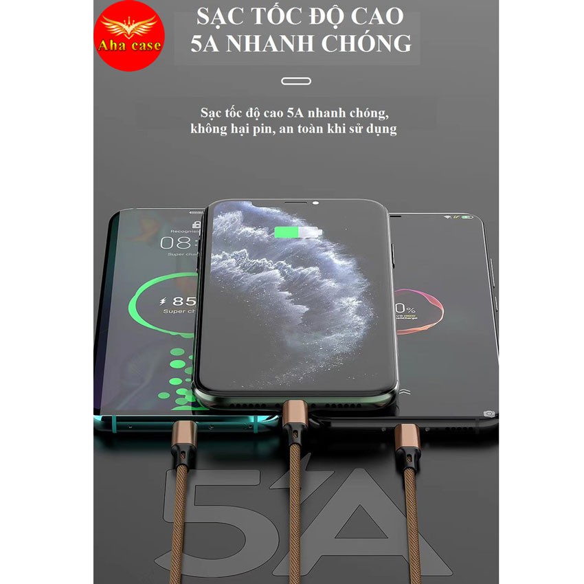 Giới thiệu Cáp sạc #3in1 SENDEM M10S bọc dù cao cấp dòng điện tải tối đa 5A chân cắm: MicroUSB, Lightning, TypeC - sạc - Hàng chính hãng