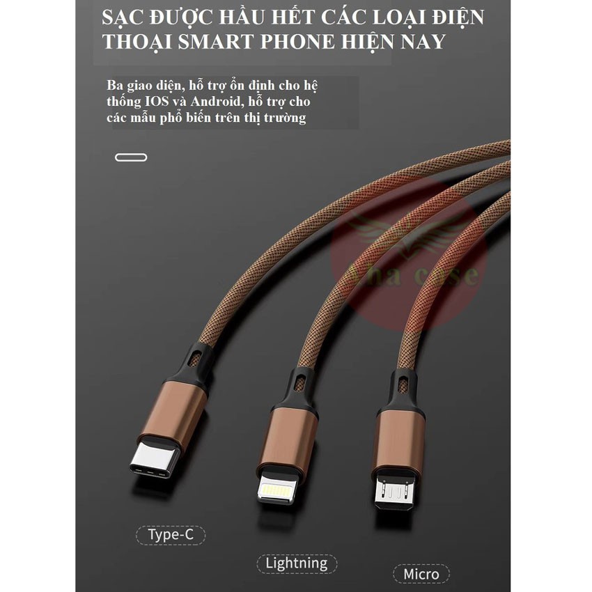 [Bán Chạy-Freeship] Cáp sạc 3 chân dây dù chính hãng Sendem M10s, Sạc 3 điện thoại 1 lúc 3in1 sạc nhanh, bảo hành 1 năm