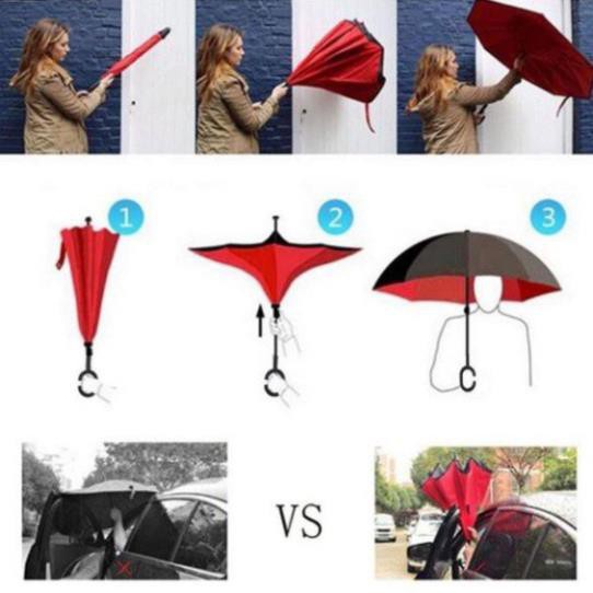 🍀 Ô dù mở ngược 2 lớp giữ nước, không bao giờ để ướt quần áo hoặc đồ dùng khi trên xe.