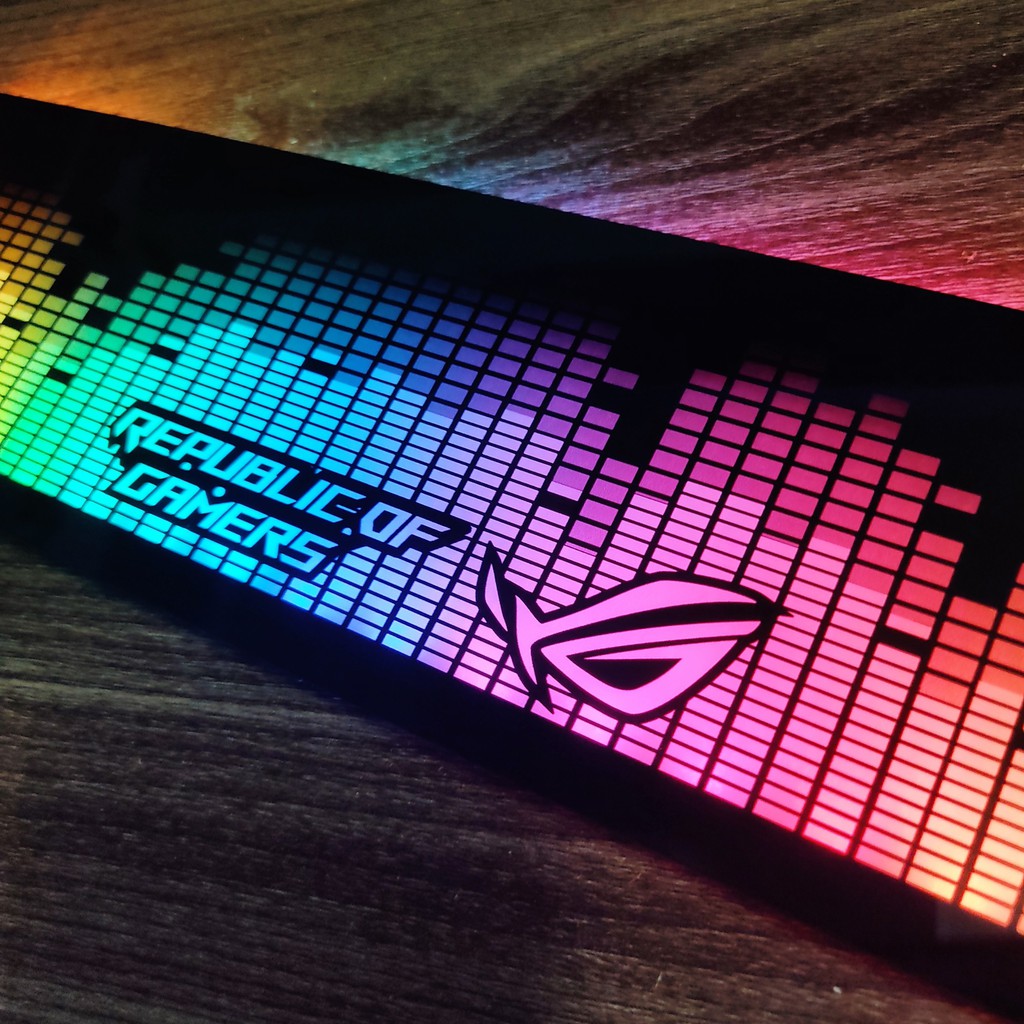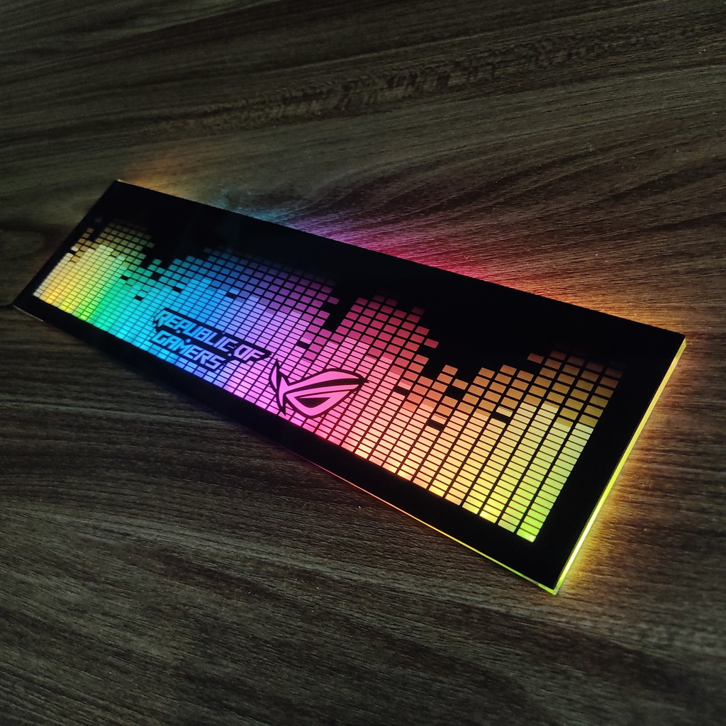 Tấm che hộp nguồn PC Led 5v ARGB logo ROG, đồng bộ màu Hub Coolmoon, hình sóng nhạcChất liệu: Mica 2 lớp siêu bền và chất lượng.