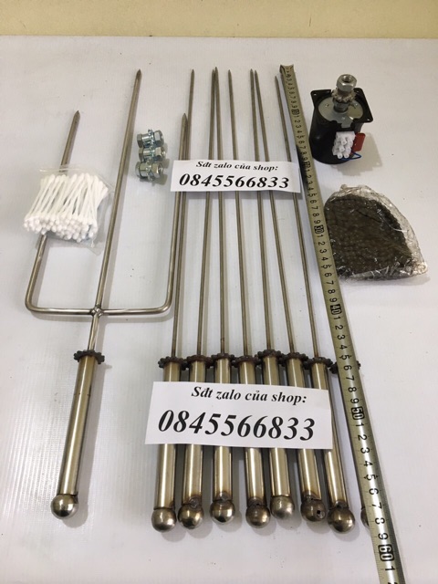 3: 8 xiên nướng inox dài , tính từ bánh răng đến điểm gác lò là 44 cm