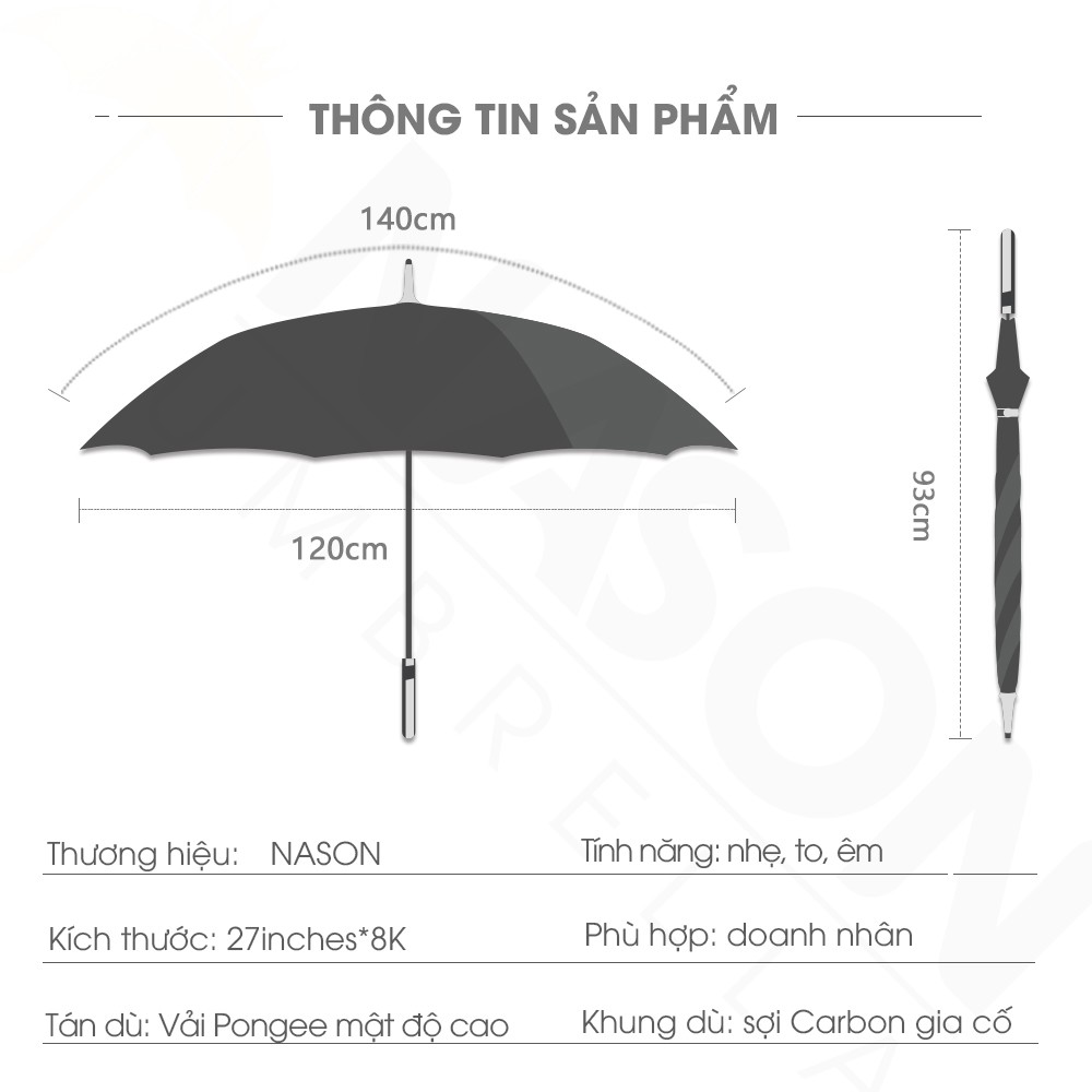 Giới thiệu Ô dù Golf cao cấp tán rộng 27 inch Tay cầm thời trang độc quyền Nason Umbrella Khung sợi thủy tinh chống lật bền bỉ