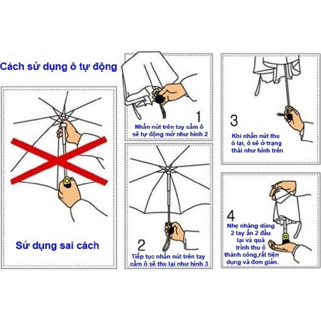 - Chiếc ô bật mở 2 chiều đơn giản bằng 1 nút bấm, giảm bớt sự khó khăn cho người sử dụng so với những chiếc ô