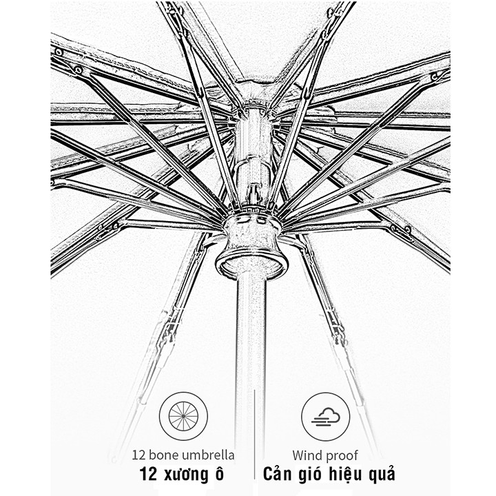 ô dù che mưa đi nắng tự động xếp gấp gọn 12 nan chống UV cao cấpmeomeo