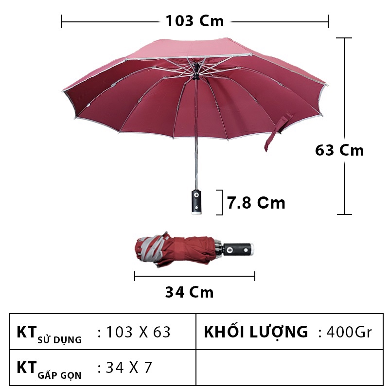 ✔️Khung sườn chắc chắn với 10 nan gia cố giúp dù không bị lật ngược khi đi dưới trời mưa, gió to