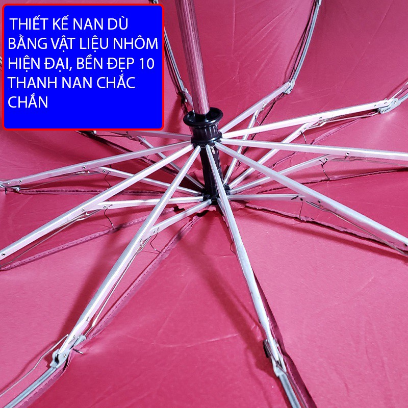 ✔️Khung sườn chắc chắn với 10 nan gia cố giúp dù không bị lật ngược khi đi dưới trời mưa, gió to