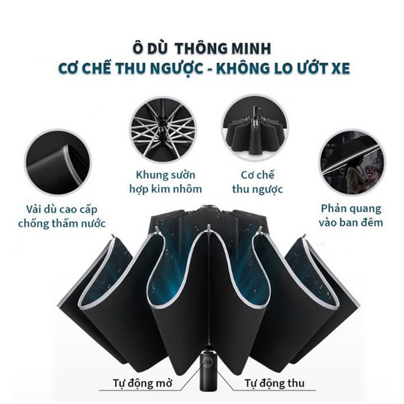 Dù che mưa - Mở, Gấp tự động - Ô mở ngược chống ướt khi mở gập - Kết hợp đèn Pin NIKITA