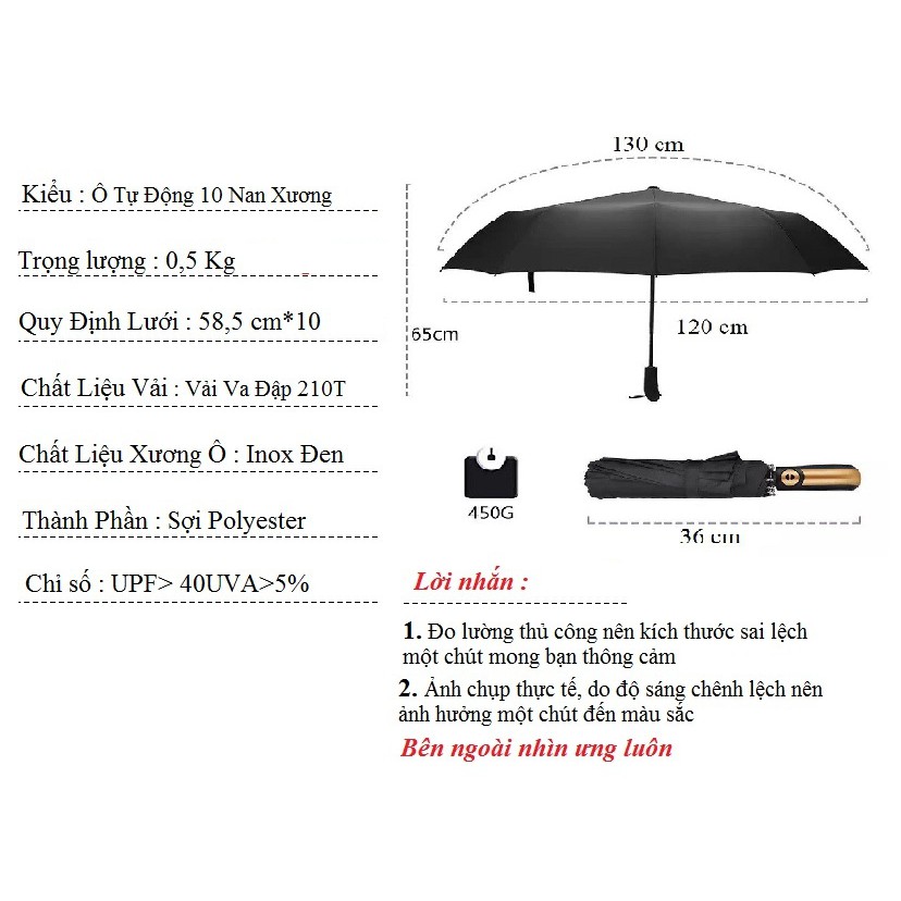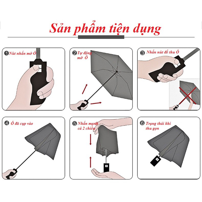 • Đây là Ô (Dù) Tự Động đóng mở bằng nút bấm, vì vậy sau khi sử dụng các bạn bấm nút để thu tán