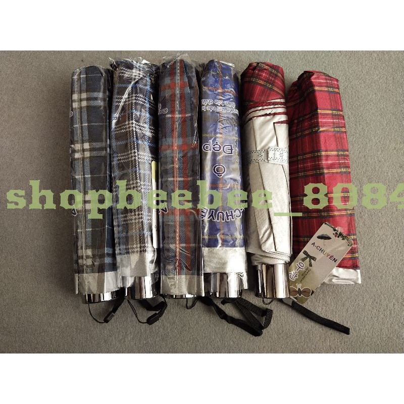 Sản phẩm ô gấp 3 các loại màu kẻ carrô cho cả nam giới và nữ giới dùng che mưa hay che nắng đều đượcLớp bạc dưới ô có tác dụng chống nóng và chống tia uv khi trời nắng lại có tác dụng chống thấm khi trời mưa