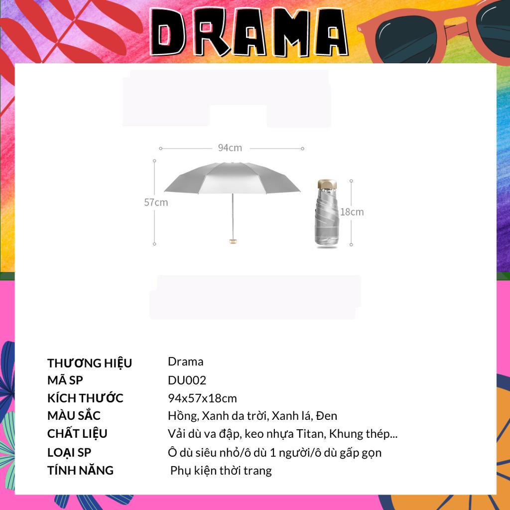 Thể Thao & Dã Ngoại > Phụ Kiện Thể Thao & Dã Ngoại > Ô/Dù || Dù che mưa, Ô gấp gọn [18cm] Công nghệ vinyl phủ keo Titan chống tia UV, phối màu đẹp mắt PHỤ KIỆN DRAMA DU002Còn hàng