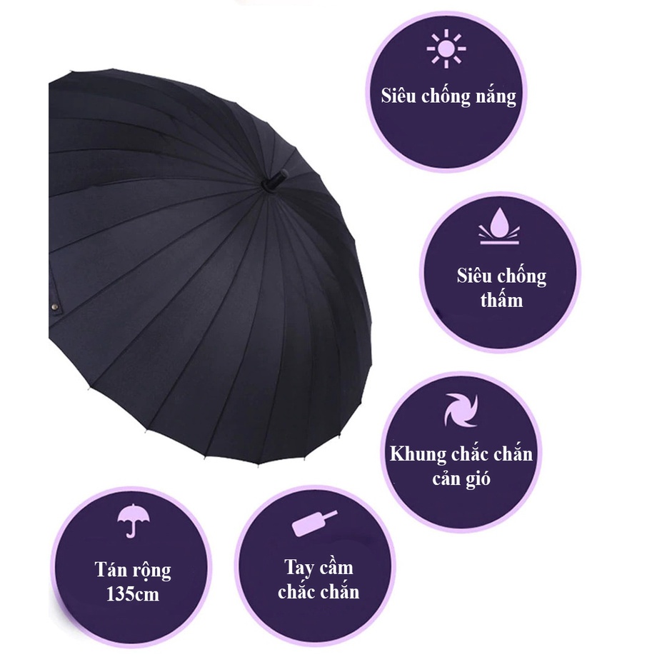 Ô Dù Che Mưa Siêu To 24 Nan Loại Tốt Kiểu Dáng Đẹp, Vải Chống Thấm Nước, Chống Tia UV Bảo Vệ Da Hiệu Quả
