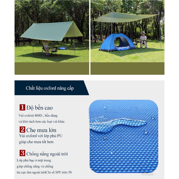 Thể Thao & Dã Ngoại > Dụng Cụ Thể Thao & Dã Ngoại > Cắm Trại & Dã ngoại > Võng || Dù Che Ngoài Trời Oxford 400D 3x3m (full phụ kiện 6 khung + dây cọc) - Home and GardenCòn hàng