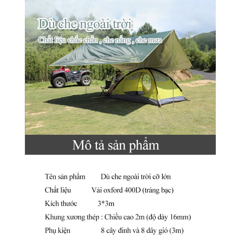 Dù Che Ngoài Trời Oxford 400D 3x3m (full phụ kiện 6 khung + dây cọc)THÔNG TIN SẢN PHẨM :