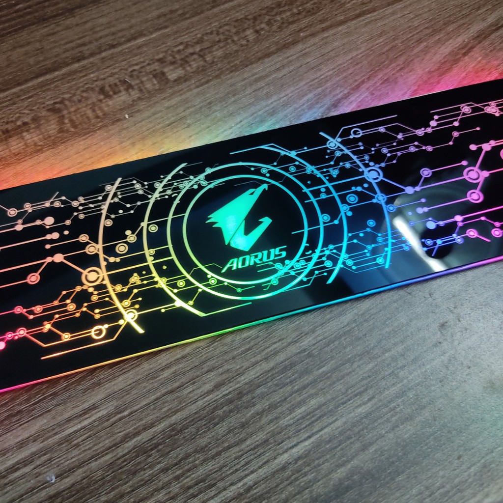 Giới thiệu Tấm Che Hộp Nguồn PC, Led 5v ARGB Logo Aorus, Đồng Bộ Hub Coolmoon, Mainboard, Họa Tiết Mạch Điện Công Nghệ