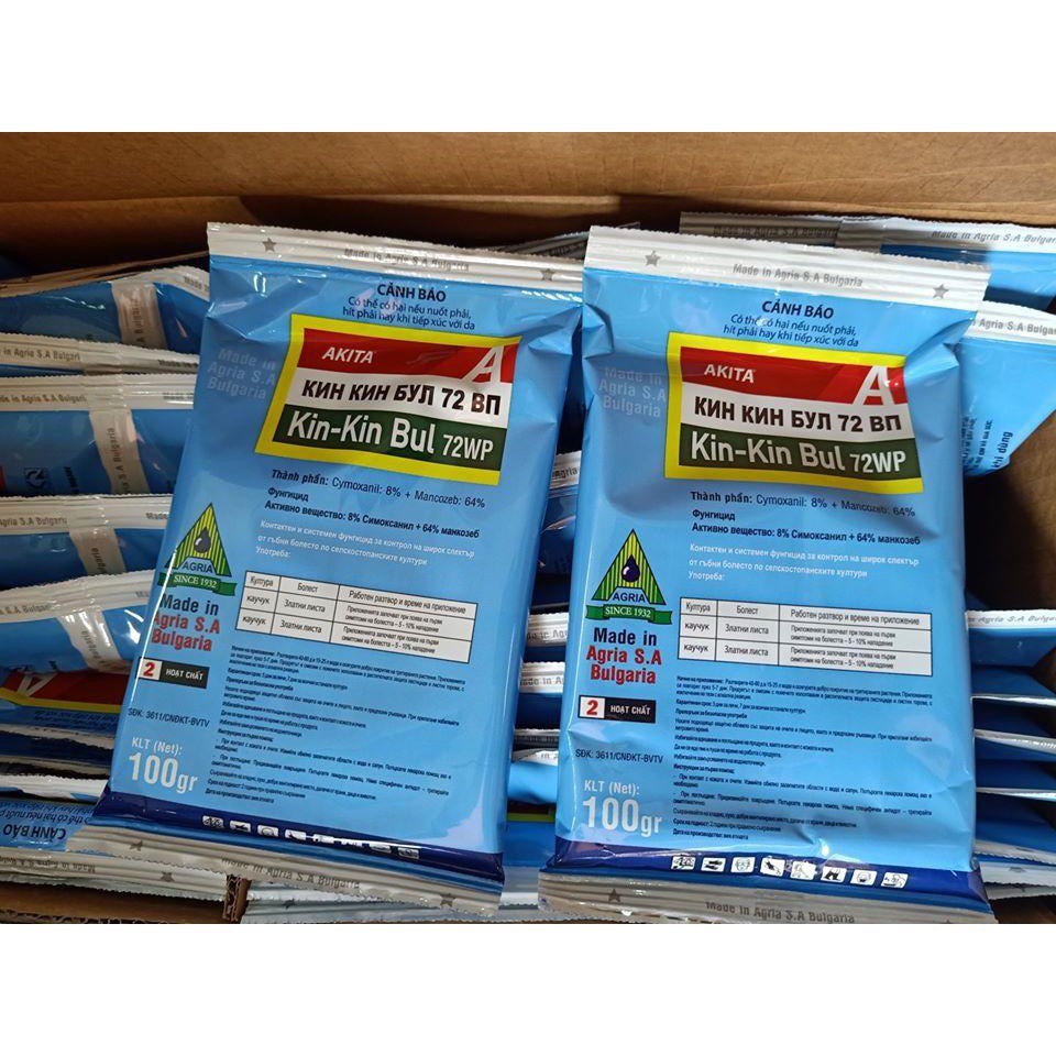 Kin Kin Bul 72WP là thuốc trừ bệnh hỗn hợp giữa 2 hợp chất Mancozeb và Cymoxanil có tác động tiếp xúc và nội hấp lưu dẫn mạnh.