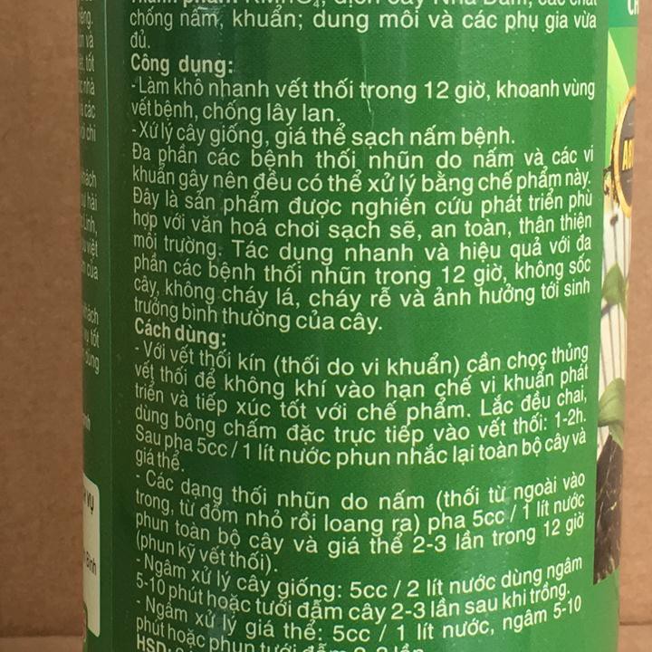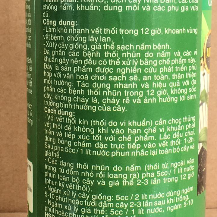 Công dụng : làm khô nhanh vết thối trong vòng 12h , khoanh vùng vết bệnh tránh lây lan Sử lý cây giống gía thể sạch nấm bệnh Đa phần các bệnh thối nhũn do nấm và vi khuẩn gây nên đều có thể sử lí bằng chế phẩm này