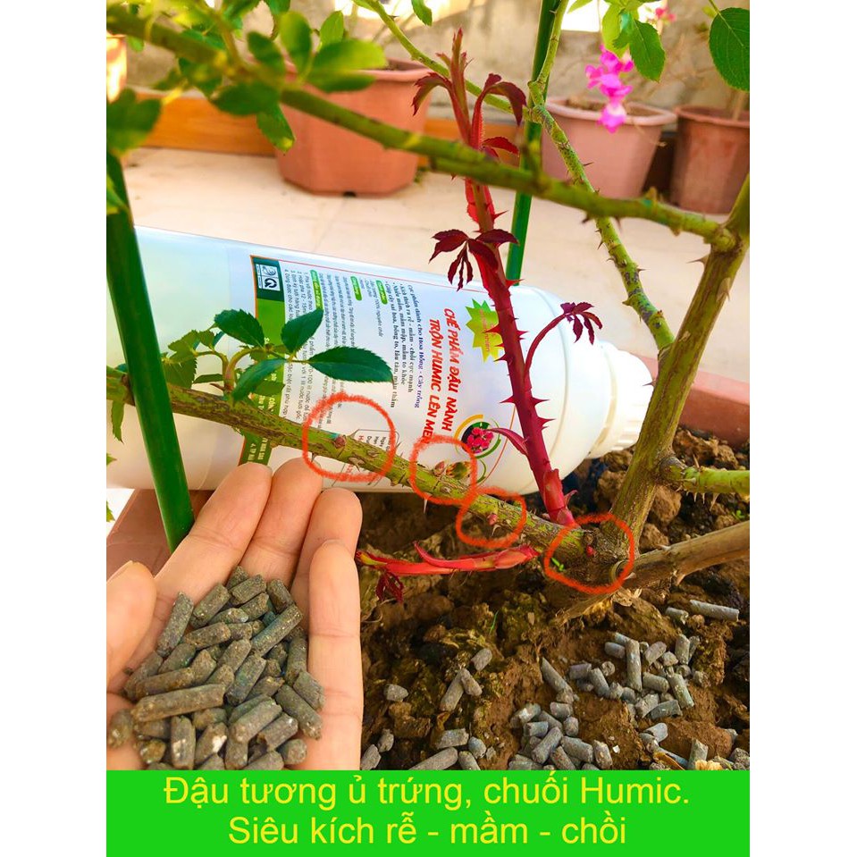 Trong chuối (đặc biệt là chuối chín) có rất nhiều tryptophan và kali rất cần cho cây, đậu tương rất giàu protein, Humic nhập khẩu từ Mỹ giúp kích rễ cực tốt, nên khi đậu nành trộn cùng Humic sẽ cho ra một loại cực phẩm vô cùng dinh dưỡng dành cho hoa hồng và các loại hoa cây cảnh.