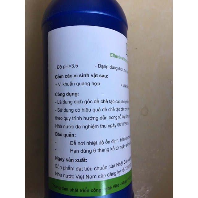 EM gốc là chế phẩm được nghiên cứu và phát triển từ đất nước mặt trời mọc, với hơn 100 chủng vi sinh vật có lợi.Dùng tưới trực tiếp cho cây với tỉ lệ 1:500 - 1:1000 với tần suất tuần 1-2 lần giúp cây khỏe mạnh phòng chống côn trùng dịch bệnh.